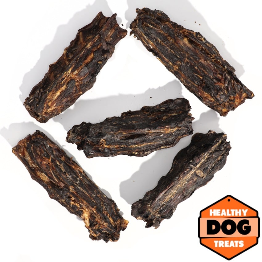 These bones have a substantial amount of meat on them compared to most other bones on the market. They are also a perfect size for the majority of dogs out there. Roo jerky and Kangaroo lumbar bones are great, but they wont have the teeth cleaning power of a roo lumbar bone.